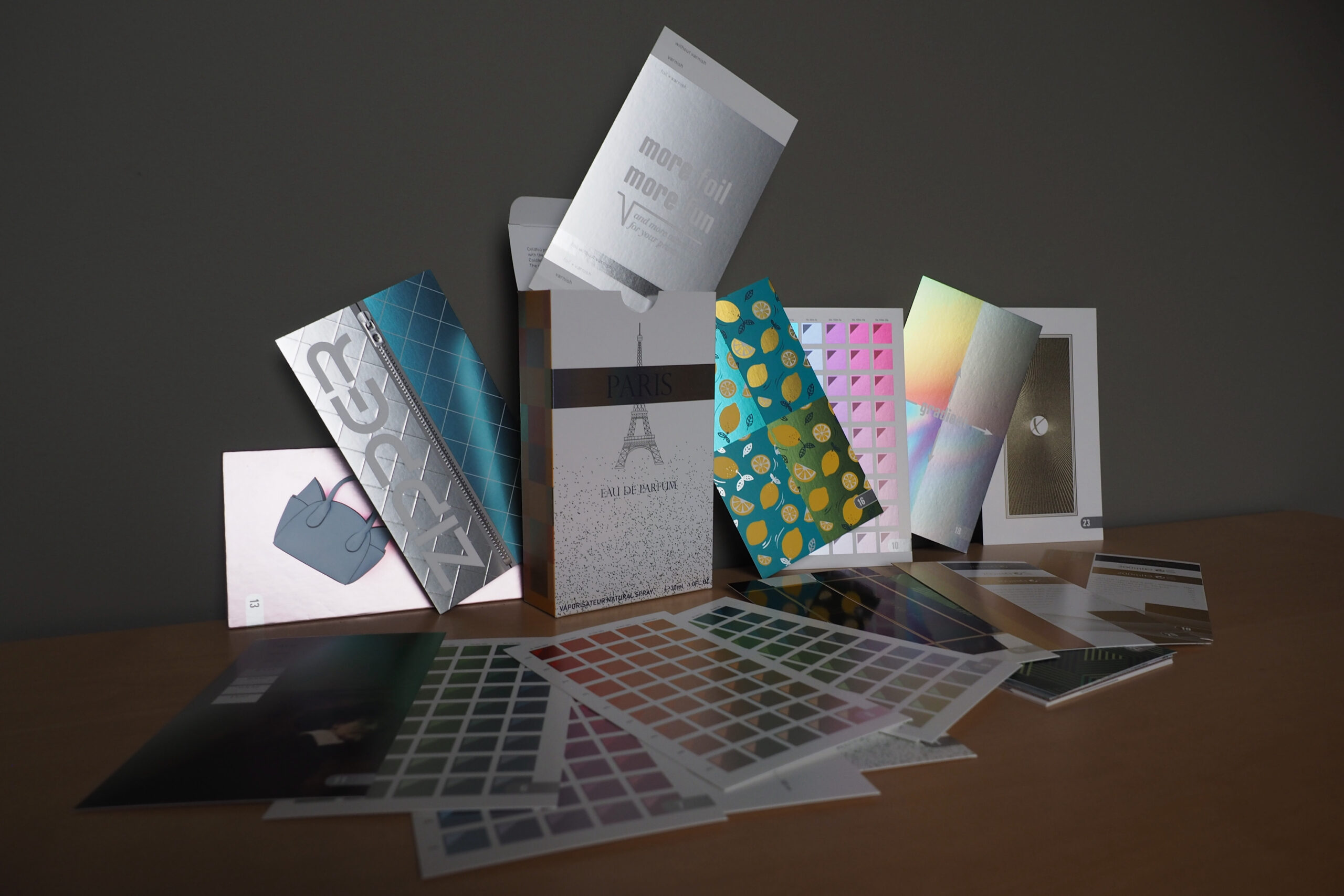 Verpackungen und Displays sind oft das erste visuelle Element der Verführung in einem Geschäft. Und wir sind Experten im Hinzufügen von Verführung. Wir arbeiten mit Faltschachteldruckern, Grafikunternehmen, die luxuriöse Geschenkverpackungen herstellen, POS-Spezialisten (Point of Sale), … wo unsere spezielle Druckbögen mit Kaltfoliendruck 1001 metallische Effekte ermöglichen. Denken Sie an Kosmetika, Schokolade, Kekse, …