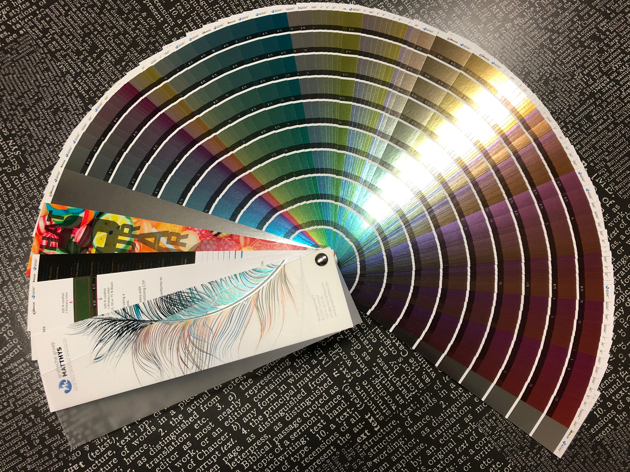 Surtout faisons simple : toute demande de rendu particulier est la bienvenue. Grâce à l’expertise que nous avons développée dans le domaine de la dorure à froid nous avons également une bonne connaissance des possibilités qu’offrent la dorure à chaud, le pelliculage miroir, l’encre métallique, l’impression numérique, … en résumé : pour toutes vos demandes de rendu métallique et/ou brillant nous saurons vous orienter vers la meilleure solution.