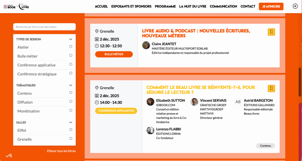 We zijn ook verheugd te kunnen aankondigen dat Vincent Servais tijdens de beurs zal deelnemen aan een rondetafelgesprek met als titel ‘Hoe vindt het mooie boek zichzelf opnieuw uit om lezers aan te trekken?’. Hij zal spreken over de huidige en toekomstige uitdagingen voor de uitgeverswereld. Door deel te nemen aan dit gesprek vertegenwoordigt Vincent Servais onze expertise op het gebied van grafisch ontwerp en ons engagement om de evolutie van gedrukte media in een digitale wereld te ondersteunen.